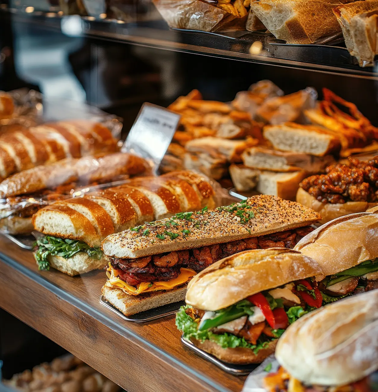 Salades fraîches, plats chauds et sandwichs raffinés, parfaits pour une pause rapide.